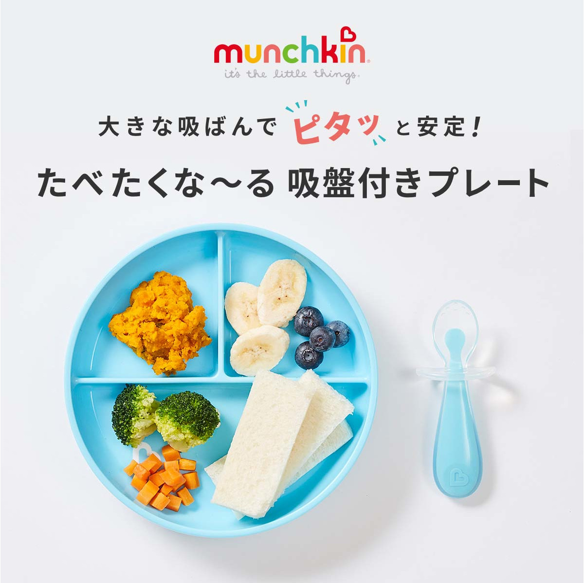 大きな吸ばんで“ピタッ”と安定 ひっくり返さず最後まで食べられる