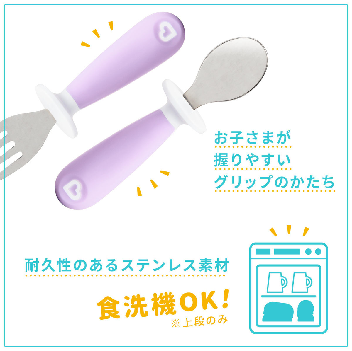 お口に入れる部分がテーブルにつかない!カトラリーレスト付きで衛生的